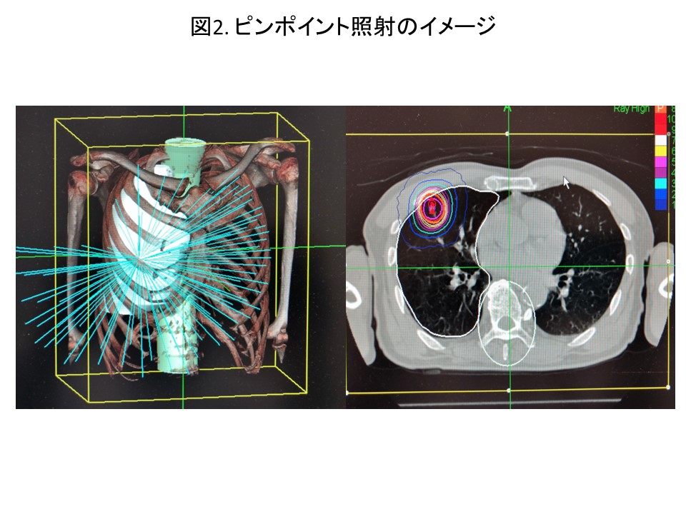 ・根治的治療として:癌を完全に治す目標で治療にあたることを「根治を目指す」と言います。癌が限局しており根治を目指せる場合は、理想的なエネルギー量を照射することにより前述の高い局所制御率の達成を目指します。